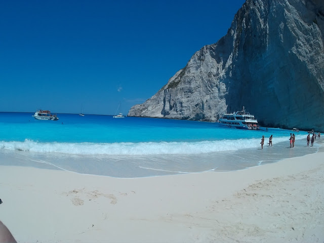 Troszkę udało mi się tam zobaczyć, więc chętnie się z Wami tym podzielę. Na pewno totalnym bezsensem jest jechać do Grecji i cały pobyt spędzić leżąc plackiem na plaży. Tego nie polecam, absolutnie! Klimat Grecji można poczuć głównie podróżując samotnie. No może czasem warto skorzystać z wycieczek fakultatywnych, ale sporadycznie. Miejsce, które powinien zobaczyć każdy odwiedzający to z pewnością słynna Zatoka Wraku. Na prawdę robi ogromne wrażenie! Żadne zdjęcie nie odzwierciedla tego widoku. Woda jest wręcz lazurowa, dziewczyny Wy wiecie jaki to kolor.:) Statek, będący główną atrakcją turystyczną zatoki należał kiedyś do przemytników. Uciekając przed strażą przybrzeżną w 1983 roku osiedli na mieliźnie i tak wrak stoi do dziś.