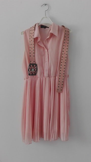 pudrowego różu, do której od razu dobrałam pasek z metalową klamrą mający nadać