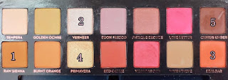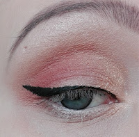 5 - Na zewnętrzny kącik oka nakładamy kolor 'realgar' oznaczony numerkiem 3 na zdjęciu z paletką. Nakładamy go w miejscu od zewnętrznego punktu linii rzęs po czym blendujemy, aby utworzyły się ładne przejścia między pierwszym kolorem a tym, którego używamy teraz.