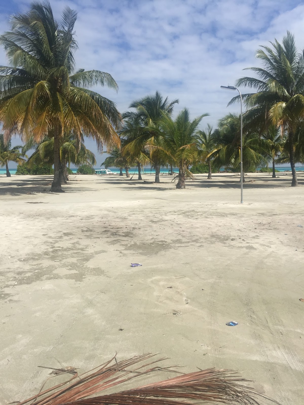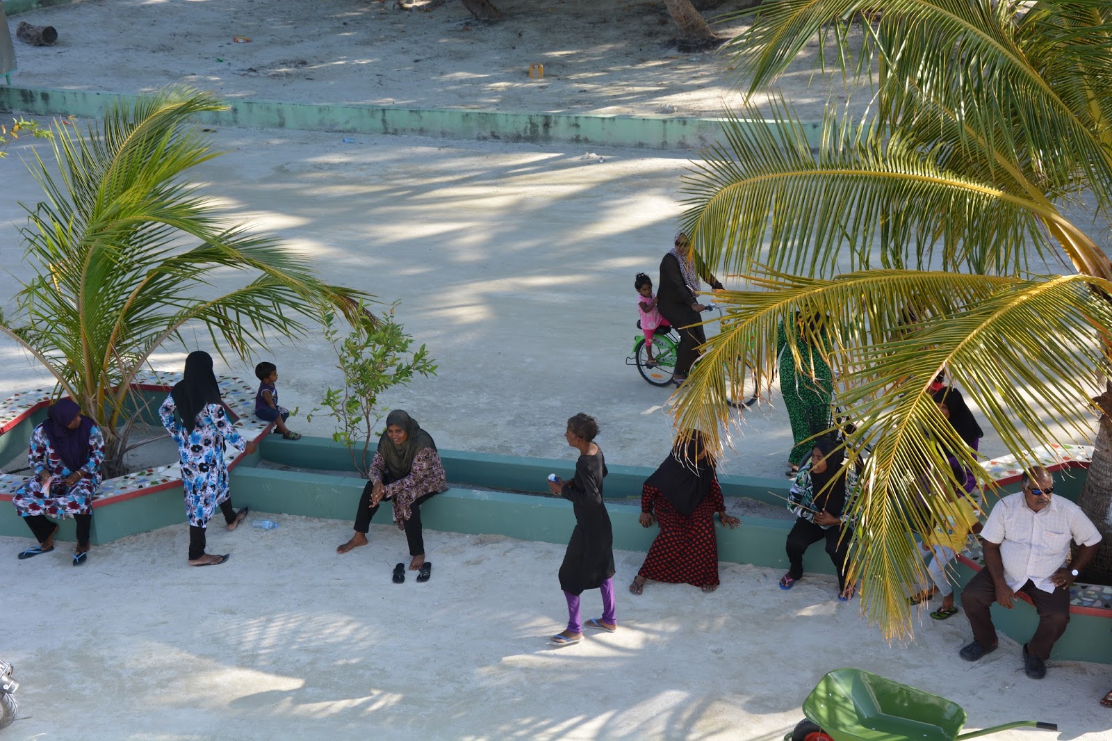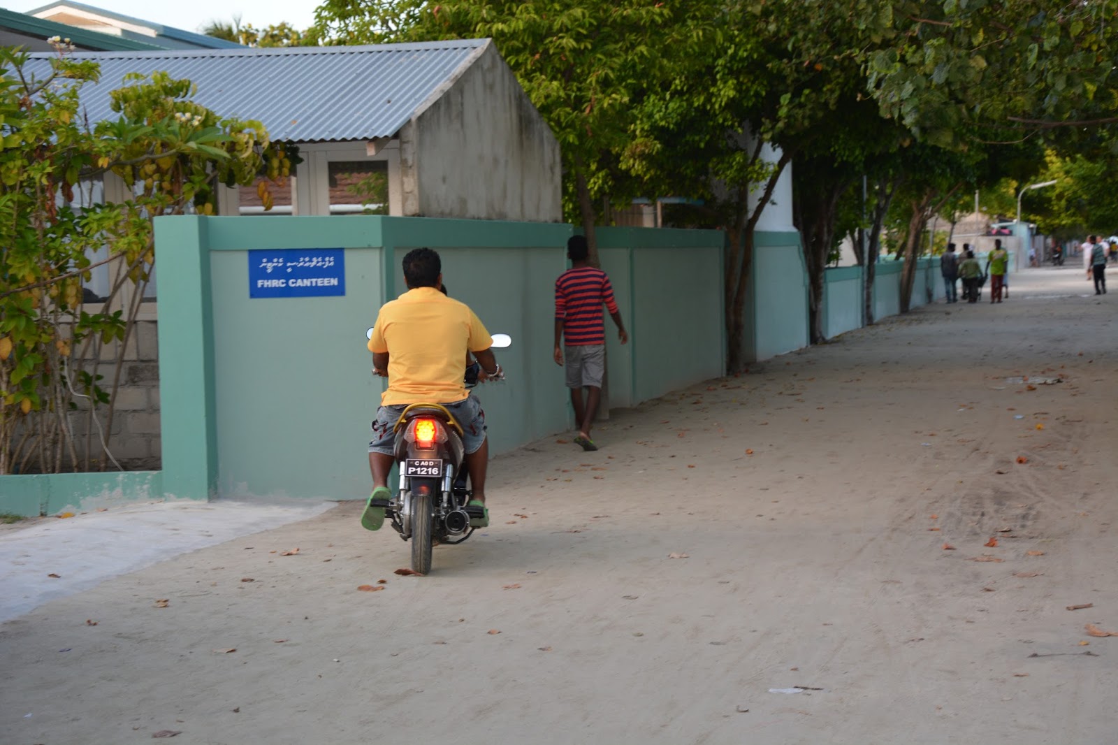 My byliśmy na lokalnej wyspie Nilandhoo, która jest stolicą atolu Faafu. Wyspa ma 1,2x0,7 km. Znajduje się na niej szkoła, port, komisariat, sąd i więzienie, szpital, kilka sklepików i 5 kantyn (kawiarnio-restauracji). Oczywiście wszystko w wydaniu lokalnym;) Z tego co pamiętam, na wyspie były 3 auta, ale nigdy nie widziałam ich na drodze. Mieszkańcy poruszają się motorami i rowerami. Każda uliczka na wyspie wygląda niemalże tak samo i na początku łatwo było się zgubić.