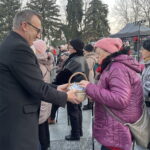 Wielu sandomierzan wzięło udział w miejskiej wigilii zorganizowanej w piątek (19 grudnia) na placu 3 Maja. Zaproszenie skierowane było do wszystkich mieszkańców. Wśród uczestników dominowali seniorzy, a część z nich miała na głowach mikołajkowe czapki.