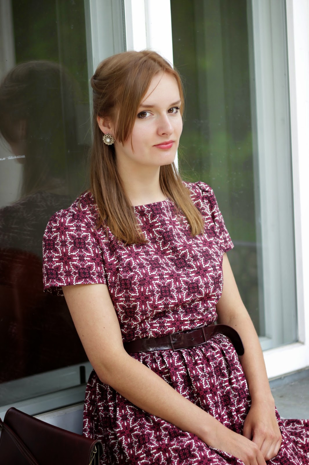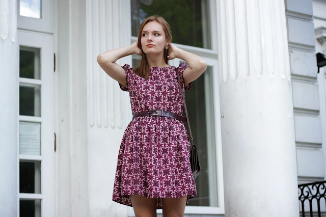 sukienka/dress - atmosphere outlet, zamszowe szpilki/ suede heels - vintage, pasek/belt- H&M, kolczyki/earrings- H&M, torebka/ bag - vintage