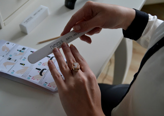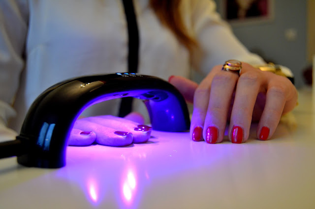 Lakiery hybrydowe od jakiegoś czasu stały się bardzo popularne, co druga kobieta chętnie korzysta z usług kosmetyczki, robiąc manicure hybrydowy lub żelowy. Długo nie mogłam się zdecydować na zakup zestawu do wykonywania powyższego manicure, ponieważ miałam problem z wyborem lampy. Czytałam różne opinie na temat lamp UV i LED. Z pomocą nadeszła firma Neess, oferując mi do testowania ich produkty wraz z zestawem startowym.W środku pudełka znalazłam malutką lampę LED 9W, dzięki jej niewielkim rozmiarom mogę zabrać ją wszędzie, idealnie sprawdzi się podczas wyjazdów. Następnie znajdował się primer, baza, top, dwa lakiery hybrydowe - "czerwony i wściekły" oraz "karmelowa tęsknota", cleaner, remover, blok polerski 120/120, patyczki do skórek, pilnik 100/180 i 180/240, folie do usuwania lakieru oraz bezpyłowe waciki, a także instrukcja "krok po kroku", jak wykonać manicure hybrydowy. Więcej informacji na temat lakierów i całą gamę kolorów Neess znajdziecie tu i tu. Zapraszam do zapoznania się z ofertą.