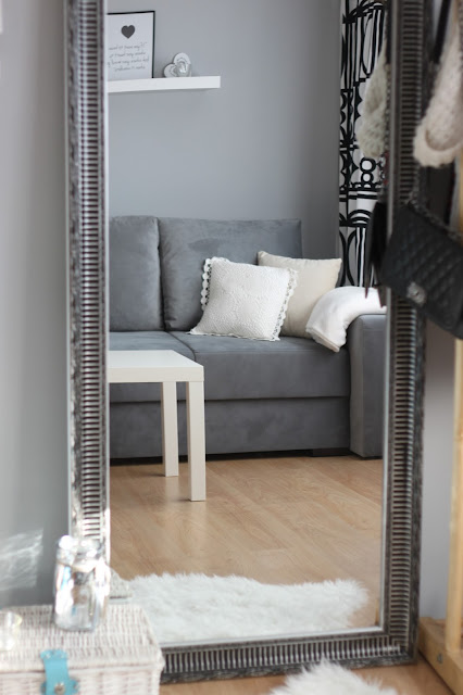 Iiii właśnie lustro jest moją wisienką na torcie! jeżeli poszukiwałyście dużego lustra to polecam zaglądnąc do Jysk. Swoje upolowałam w tym tygodniu na przecenach (które w sumie przez cały czas realizowane są do 9 grudnia). Lustro zostało przecenione z 500 zł na 150 zł plus wykorzystałam bon 20 zł za zapisanie się do newlettera i tym sposobem za lustro sporych wymiarów z ogromną srebrną ramą wydałam jedynie 130 zł! Polecam :)