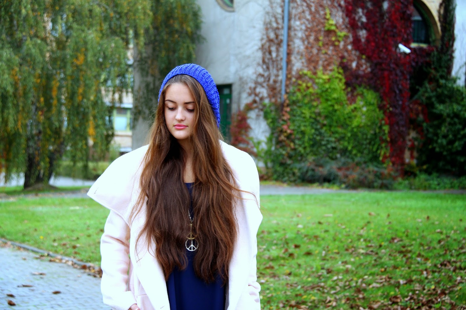 / sukienka - SHEINSIDE / czapka - Reserved / buty - CCC / naszyjniki - Six / płaszcz - Bershka /