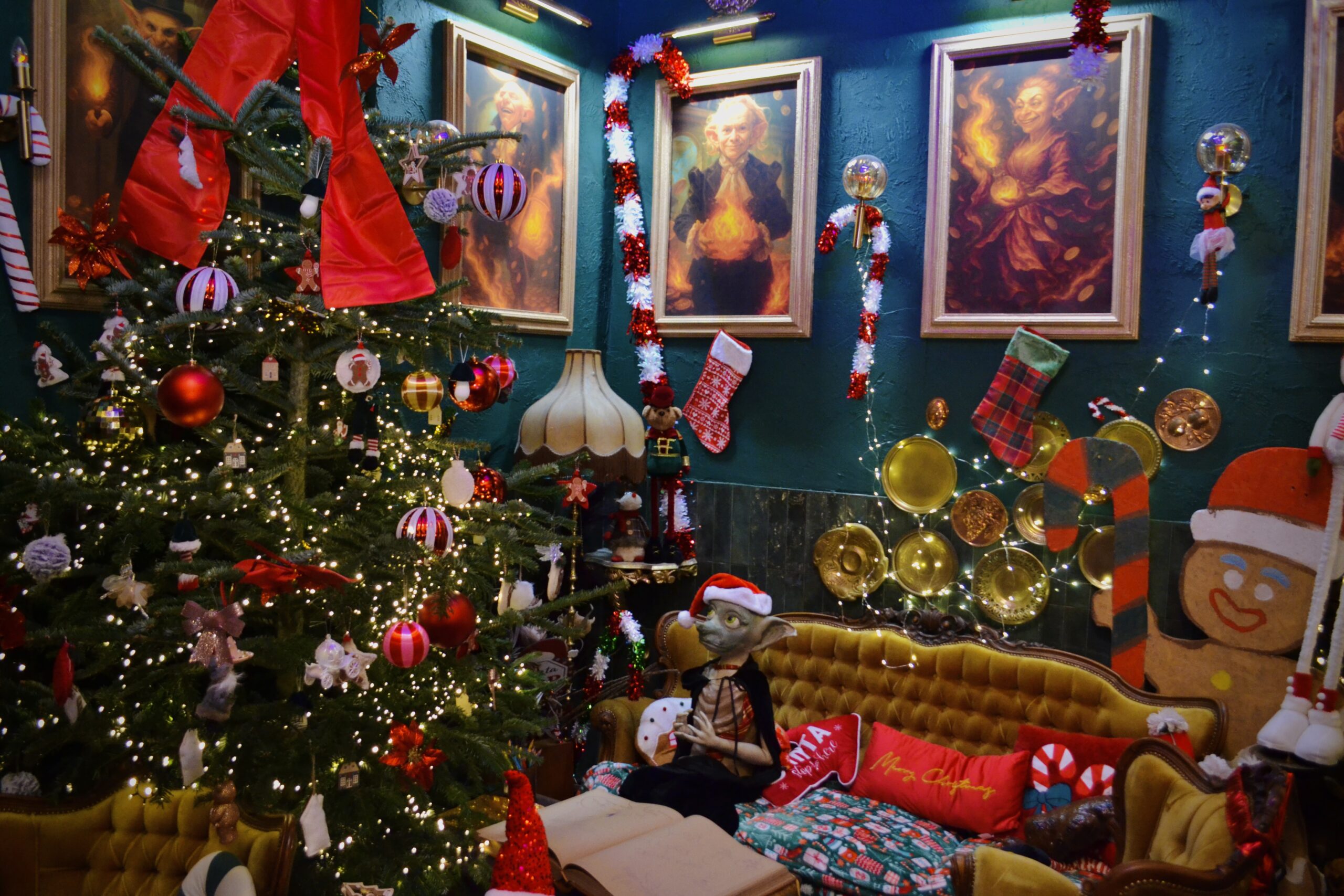 Setki ozdób, tysiące lampek, w tym manualnie przygotowywane dekoracje i starannie dobrane motywy sprawiają, iż każdy kąt opowiada własną historię. Jedne pokoje są utrzymane w klasycznym świątecznym stylu, inne w stylu magicznych komnat, a jest choćby słynny, najbardziej różowy pokój, miękki, baśniowy i niezwykle fotogeniczny. Każdy stolik stoi w innym tematycznym otoczeniu, dzięki czemu za każdym razem można usiąść w innym świecie. Jest choćby sekretny stolik ukryty w zaczarowanej szafie, który potrafi zamienić zwykłą wizytę w prawdziwą przygodę.