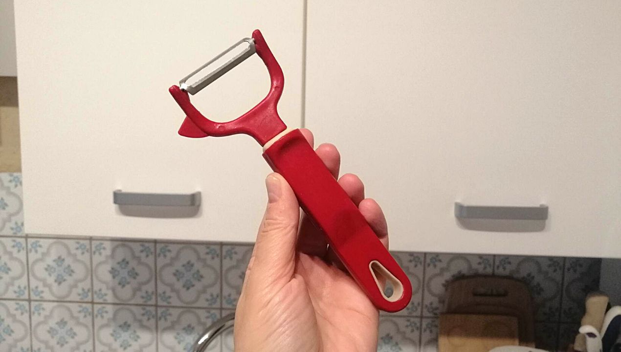 Przecież to proste! Przesuwamy nią z góry w dół, dociskając ją wtedy do warzywa i po drodze ściągając jego wierzchnią warstwę. Też tak robisz, prawda?