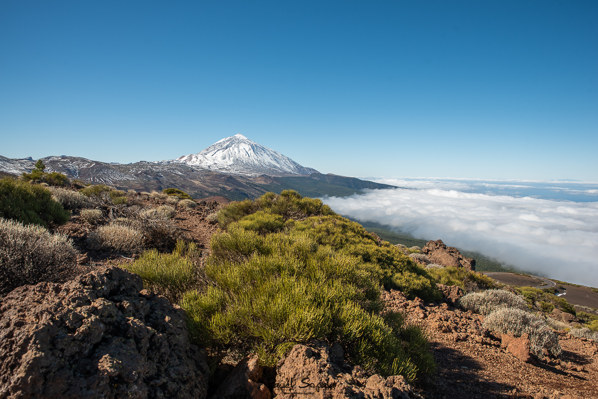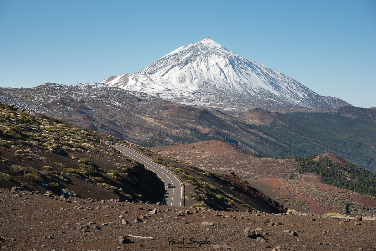Samochodowy odcinek TF-24 jest zresztą bardzo malowniczy, bo mamy wspaniałą panoramę na północną część wyspy. Poniżej naszego parkingu znajdują się dwa inne miejsca postojowe z punktami widokowymi na wulkan. Są one znacznie dalej położone od wskazanego przez ze mnie parkingu i przeważenie zapełnione turystami, a choćby może zdarzyć się przy pełnym sezonie na Teneryfie, iż nie będzie wolnego miejsca postojowego.