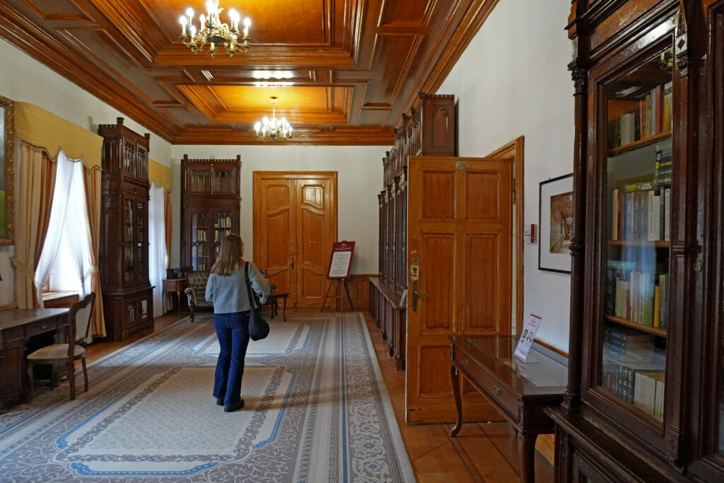Do zwiedzania jest udostępniona całkiem spora część zamku – 8 reprezentacyjnych komnat, zamkowe wieże, kaplica, położona na parterze stylowa restauracja i kawiarnia, okalający budynek park. Bilety możemy kupić w różnych kombinacjach łączeniowych – np. sale zamkowe + wieże, zwiedzanie z przewodnikiem lub bez niego. My przeszliśmy trasę podstawową (zwiedzanie komnat bez przewodnika + wstęp do parku) – zwiedzaliśmy własnym tempem, a w każdej z sal odtwarzało się nagranie, opisujące konkretną historię danego miejsca.
