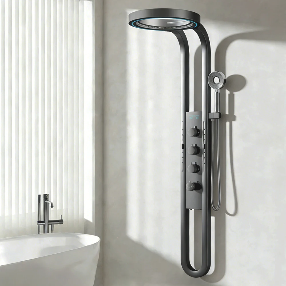 Panel prysznicowy z oświetleniem LED, cyfrowym wyświetlaczem, zestaw baterii prysznicowej, ekran prysznicowy, system prysznicowy z wodospadem, montowany na ścianie.