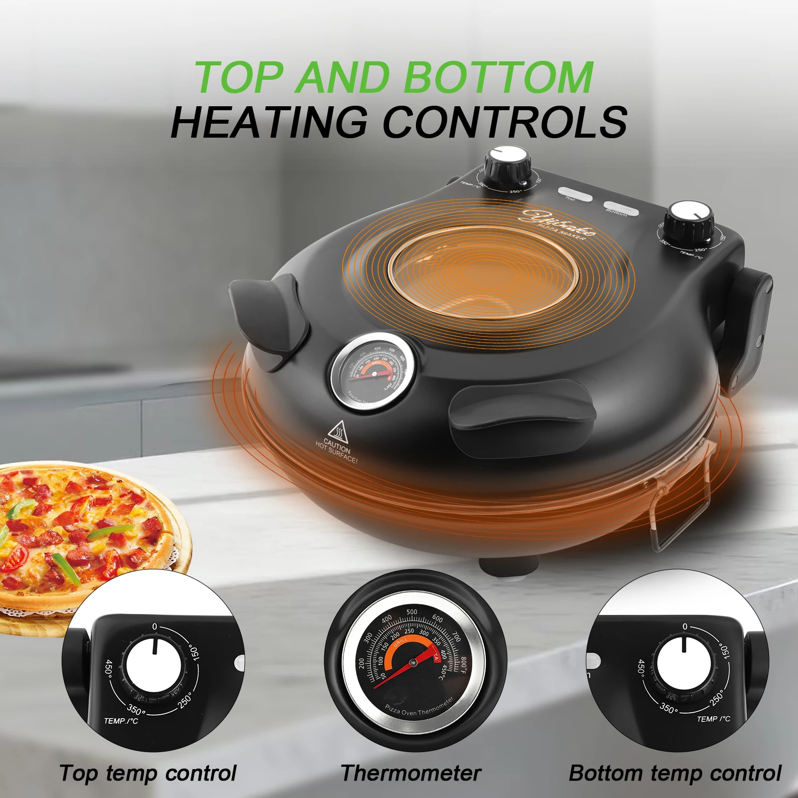 12 Inch Electric Pizza Oven Indoor Countertop Maker with Ceramic Stone Heats up to 420℃ for Delicious Stone Baked Pizzeria Set