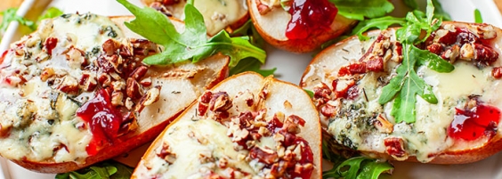 Soczysta gruszka, z wnętrzem wypełnionym żurawiną, przykrytą odrobiną pleśniowego sera i chrupiącą posypką z orzechów! 🍐🍐🍐 Gdy to wszystko podpieczemy, skropimy miodem i podamy ze świeżą rukolą otrzymamy naprawdę interesującą kompozycję smaków, idealną na jesienne, chłodne wieczory :)