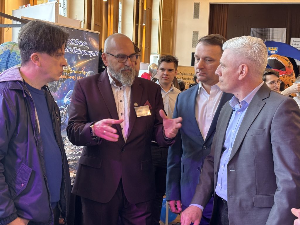 Powiatowe Targi Edukacyjne odwiedzili również przedstawiciele władz samorządowych: Starosta Tarnogórski Adam Chmiel, Przewodniczący Rady Powiatu Tarnogórskiego Przemysław Cichosz, Wicestarosta Anna Kubica oraz Członkowie Zarządu Powiatu Tarnogórskiego – Dariusz Szopa, Dariusz Wysypoł i Sebastian Nowak.