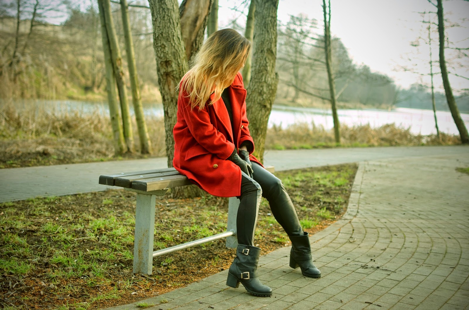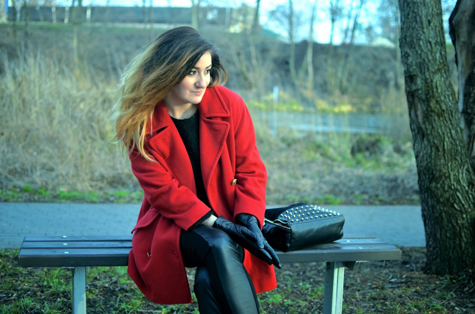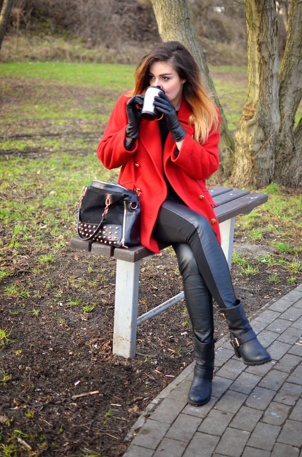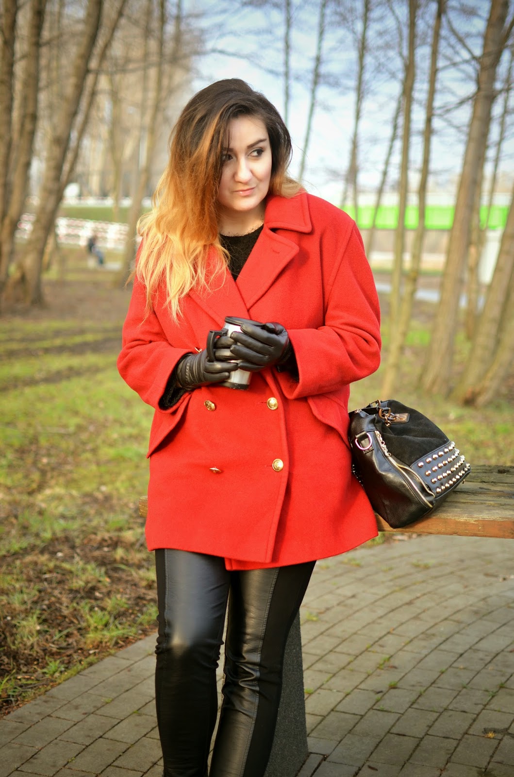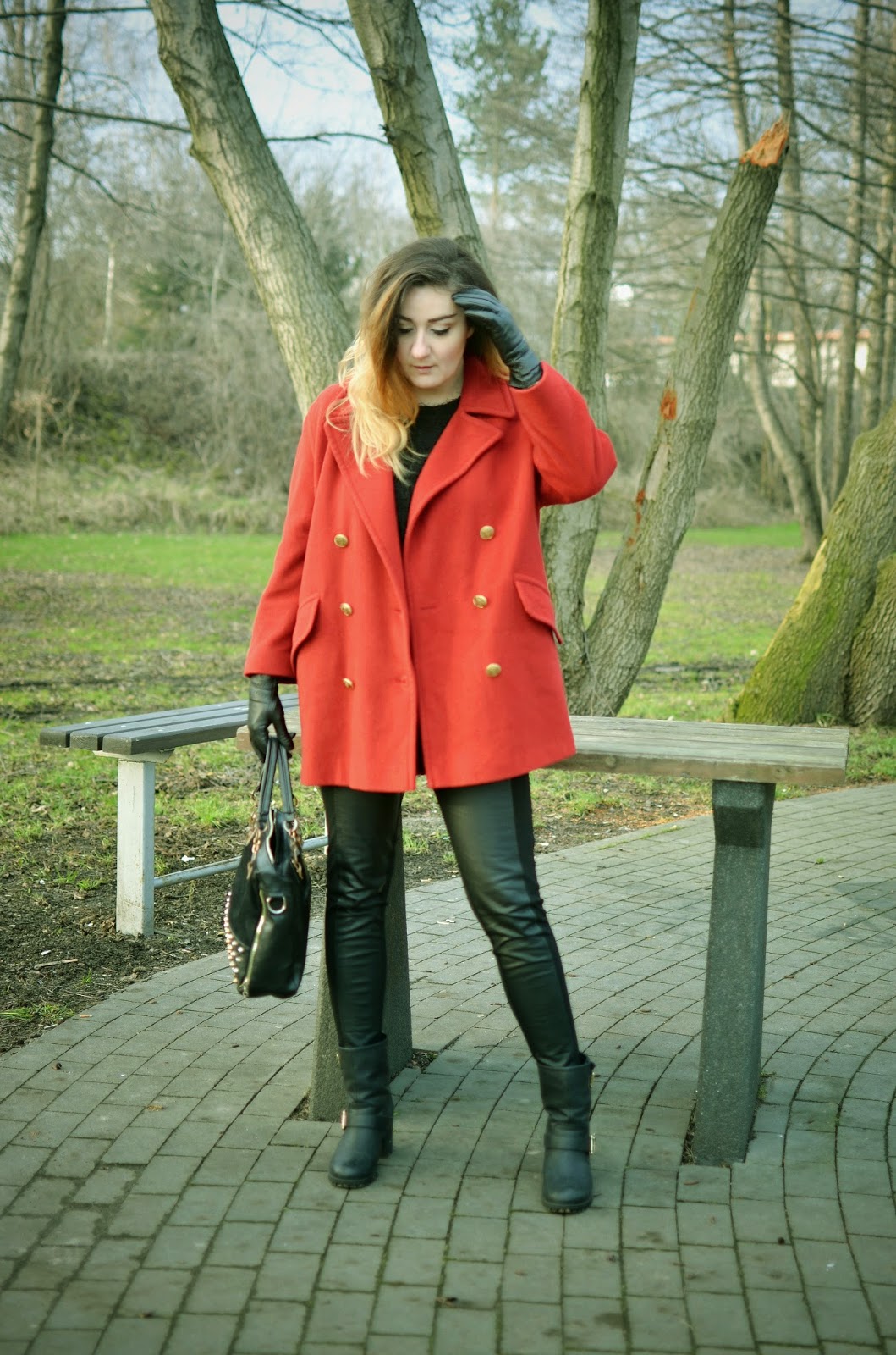 / płaszcz, sweter, torebka - sh; rękawiczki - Bata /