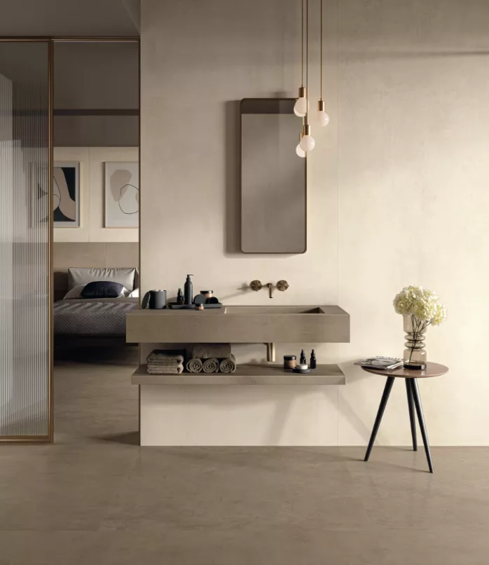 W salonie wielkoformatowe płytki w dużym formacie podkreślają nowoczesny charakter wnętrza i świetnie komponują się z drewnem, metalem czy szkłem. Coraz częściej płyty wielkoformatowe wykorzystywane są także jako element dekoracyjny – na ściany akcentowe, kominki czy zabudowy meblowe.