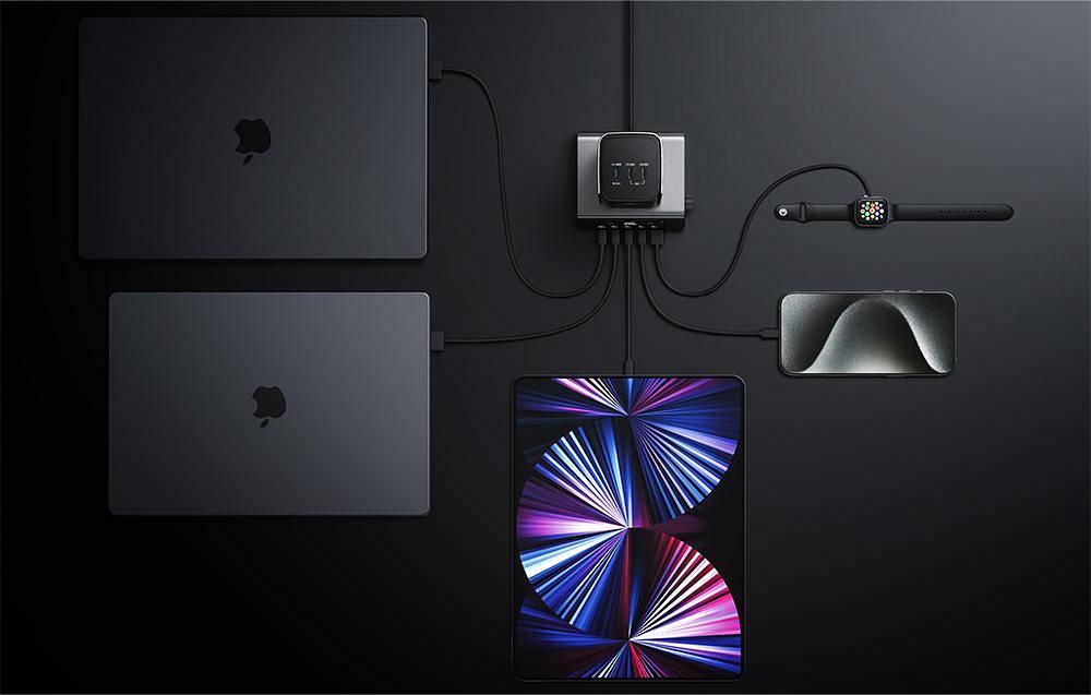 Uzupełnieniem serii jest stacja dokująca RAPID Pro, która oferuje moc sięgającą 320 W i pozwala ładować choćby sześć urządzeń jednocześnie. Cztery porty USB-C, jeden USB-A oraz złącze pogo pin do współpracy z powerbankami RAPID Pro sprawiają, iż jest to wygodne rozwiązanie do biura i nie tylko – pomaga zapanować nad kablami i ułatwia zachowanie porządku.