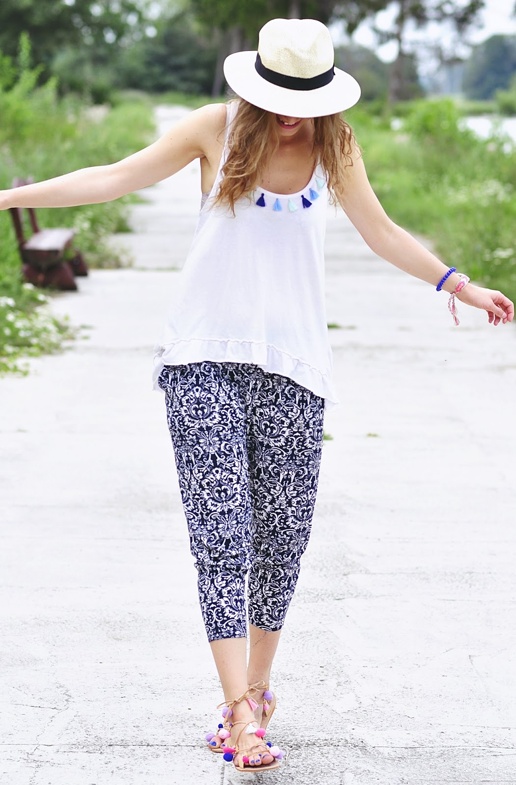 Co do stylizacji, znajdują się w niej dwa przerobione przeze mnie elementy - rzymianki i top z frędzelkami, jeżeli chcecie podejrzeć jak je wykonałam, wskakujcie TUTAJ