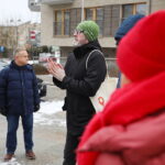 28.12.2025. Kielce. Kielecki Spacer Miejski – „Kielce w pigułce” / Fot. Wiktor Taszłow – Radio KielcePrzewodnikiem po Kielcach i organizatorem wyprawy był Jakub Juszyński, autor bloga tymrazem.pl, który od 2014 roku zaprasza kielczan i gości do wędrówki po mieście i regionie. Jak wyjaśnił, chciał pokazać Kielce w pigułce. Stąd wybrał trasę oczywistą, ale postarał się wyciągnąć z niej coś nieoczywistego.