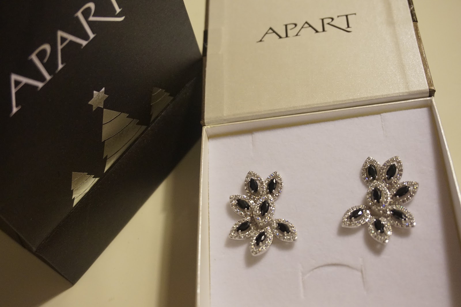 Kolejna para, tym razem bardziej eleganckie i wieczorowe. Już nie mogę doczekać się, kiedy założę je do czarnej sukienki, kiedy będę wybierać się do Filharmonii czy Teatru Wielkiego. Motyw czarnych kamieni przewija się w mojej biżuterii bardzo często. Jestem wielką fanką kolekcji uzupełnionej czarną ceramiką (znajdziecie ją również w sklepach APART). Mam już kilka/naście pierścionków i naszyjników.