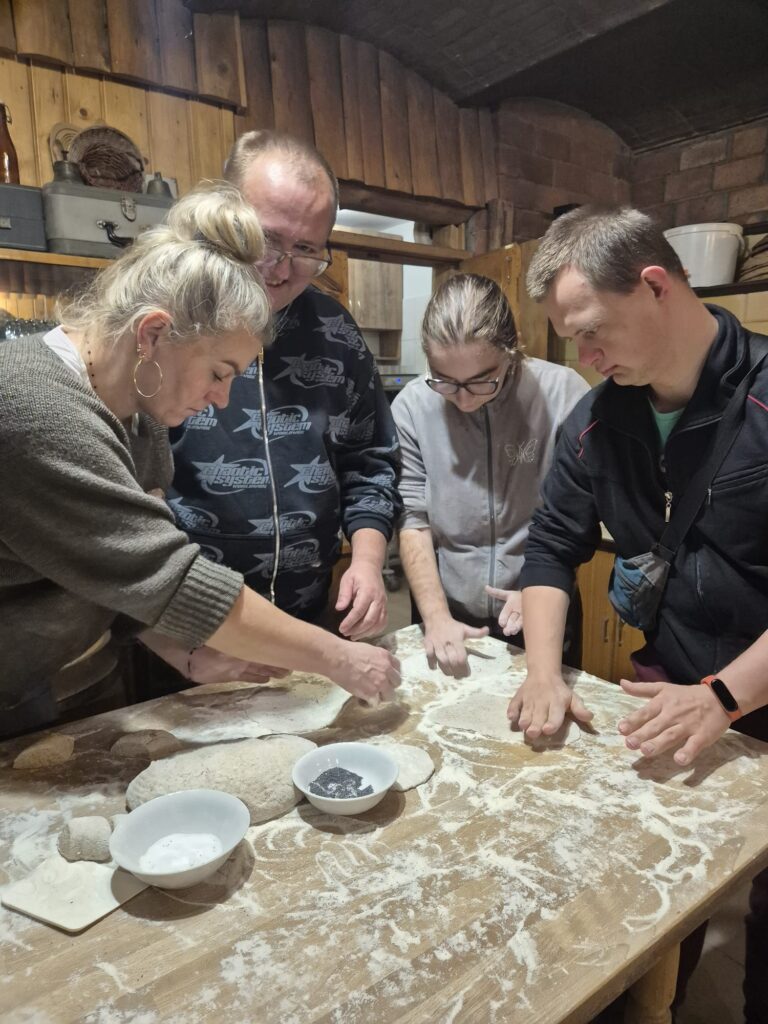 W ramach wyjazdu odwiedzono także Chlebową Chatę w Górkach Małych, gdzie gospodarze ukazali drogę ziarenka zboża, które musi pokonać wiele etapów, aby w postaci bochenka znaleźć się na stołach i kusić niepowtarzalnym zapachem. Uczestnicy mogli przypomnieć sobie jak dawniej wyglądało życie na wsi, jak robiono masło, jakimi narzędziami pracowano w gospodarstwie, czym zajmuje się pszczelarz. Każdy z podopiecznych mógł praktycznie przekonać się, jakie czynności należy wykonać od wyrobu ciasta do otrzymania gotowego bochenka lub podpłomyka.