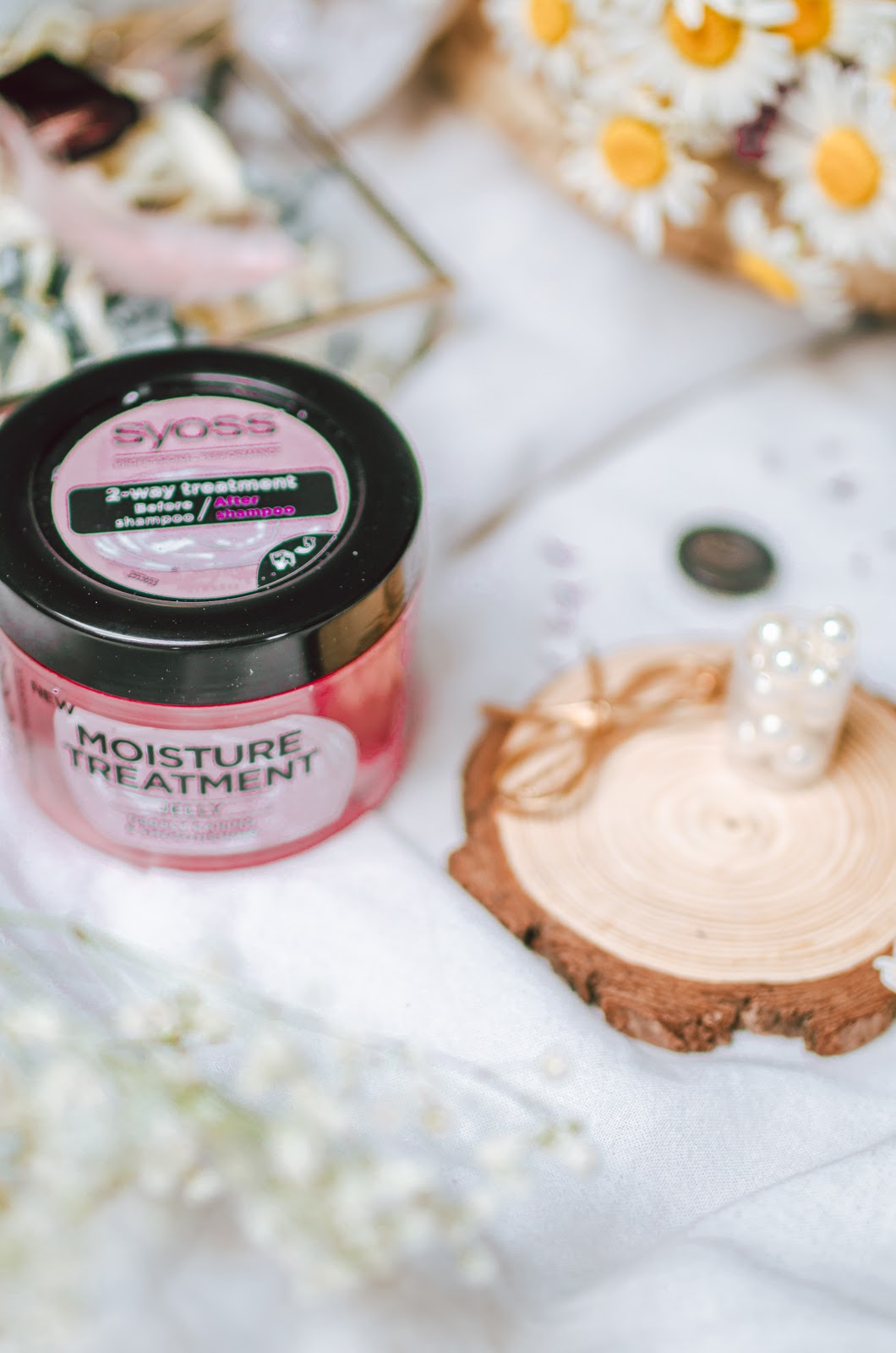 Kolejnym pełnowymiarowym produktem jest nawilżająca kuracja w formie galaretki SYOSS. Może być ona wykorzystywana na dwa sposoby: jako 1-minutowa maska nawilżająca przed myciem włosów lub jako ekspresowa kuracja po umyciu. Ja stosuję metodę mycia włosów OMO, dlatego i taka i taka opcja mnie zainteresowała (dla niewtajemniczonych stosuję maskę, odżywkę itp, zarówno przed jak i po myciu włosów szamponem|).