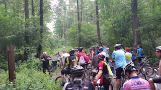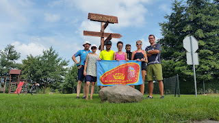 W minioną niedzielę (24 lipca) miałem przyjemność poprowadzić łódzką grupę uczestników wspólnego rajdu, którego tematem były "Źródła, cieki i doliny Parku Krajobrazowego Wzniesień Łódzkich". Aby nie stwarzać zbyt wielkiego chaosu pomiędzy niedzielną wycieczką PTTK, która zawsze odbywa się ze Starego Rynku w Łodzi o godzinie 9.00 - zbiórkę uczestników rajdu zaproponowałem na tzw. "Kaloryferze". Jest to parking przy ul. Wycieczkowej, którego kształt w rzucie z góry przypomina kaloryfer. Łącznie wszystkich chętnych osób chcących jechać ze mną było sześć. Z jednej strony to mało, z drugiej to wystarczająca liczba aby w dobrych humorach przemierzać górki. Uczestnicy okazali się wytrawnymi rowerzystami więc nie miałem przez cały rajd żadnego problemu z ich kondycją ani z awariami rowerów - dobrze przygotowany sprzęt procentuje oszczędnością czasu.