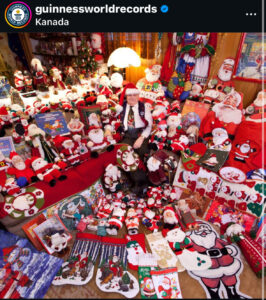 Fot. GuinnessworldrecordsKanadyjczyk Jean-Guy Laquerre zapisał się w Księdze Rekordów Guinnessa jako właściciel największej kolekcji pamiątek związanych ze św. Mikołajem. W 2010 roku liczyła ona ponad 25 tysięcy figurek, ozdób i dekoracji. Zbierał je przez kilkanaście lat, a przygotowanie świątecznego wystroju domu zajmowało mu choćby dwa tygodnie. Kolekcja była efektem jego miłości do Bożego Narodzenia i świątecznej atmosfery, którą chętnie dzielił się z odwiedzającymi.
