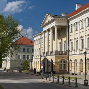 Pałac Kazimierzowski jest siedzibą władz rektorskich UW. Gmach został wzniesiony w XVII wieku. Jego nazwa pochodzi od imienia pierwszego właściciela – króla Jana Kazimierza. Przebudowywany później wielokrotnie pałac, podczas II wojny światowej uległ w znacznym stopniu zniszczeniu. Rekonstrukcji dokonano w latach 1945–1954 pod kierunkiem Piotra Biegańskiego.