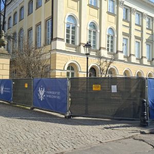 Przy zachodniej elewacji Pałacu Kazimierzowskiego prowadzone są prace ziemne. Obejmują one odkopanie i odsłonięcie ścian oraz stropu komory zewnętrznej w celu wykonania nowych izolacji termicznych i przeciwwilgociowych. Prace techniczne potrwają do czerwca i związane są ze zmianą lokalizacji głównej rozdzielni elektrycznej oraz węzła centralnego ogrzewania.
