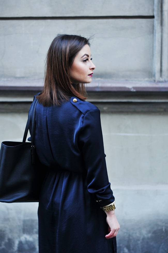 Satynowa sukienka trafiła w moje ręce w poszukiwaniu kreacji na rodzinne spotkanie. Chciałam, aby była klasyczna, ale też oryginalna i nie o banalnym kroju. I tak podczas zakupowych łowów trafiła w moje ręce. w tej chwili w jesiennych trendach króluje satyna i tego typu delikatne, zwiewne kreacje. Jest to idealne rozwiązanie nie tylko na wieczorne wyjście, ale również na co dzień.