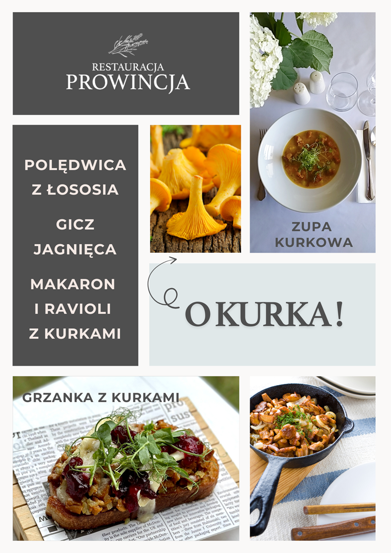 Kto jeszcze nie miał okazji odwiedzić Prowincji (mieści się w Dworze Zbożenna) i spróbować dań z kurkami niech gwałtownie nadrobi zaległości, polecamy. Już w lipcu w menu Prowincji pojawiły się kurki, prawdziwy skarb. Wciąż są one tam dostępne.
