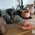 07.11.2025. Dzierążnia. Eksponaty z izby pamięci w szkole podstawowej. / Fot. Marta Gajda-Kruk – Radio KielceIzba kryje również wiele cennych pamiątek związanych z działającą tu niegdyś zlewnią mleka. Był to punkt, do którego rolnicy przywozili mleko końmi w bańkach. Dzierążnia słynęła wówczas z wyrobu masła i śmietany. Stąd w szkolnych zbiorach także maselnice, butelki na mleko itp. Jak dodaje Wiesława Michalska, kolekcja wciąż się powiększa.