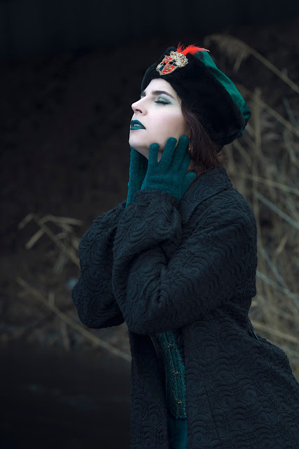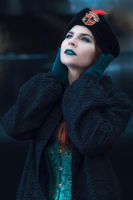 Stylizacja jest dość prosta, przełamana jedynie sarmacką czapką, którą pożyczyłam z puli kostiumów szytych przez Gabrielę Flagę na coroczną imprezę-rekonstrukcję kaźni Kazimierza Łyszczyńskiego (autora barokowej książki "O nieistnieniu Boga"). Więcej o stylizacji i makijażu napiszę przy następnej notce z tej sesji, która ukaże się już za kilka dni!