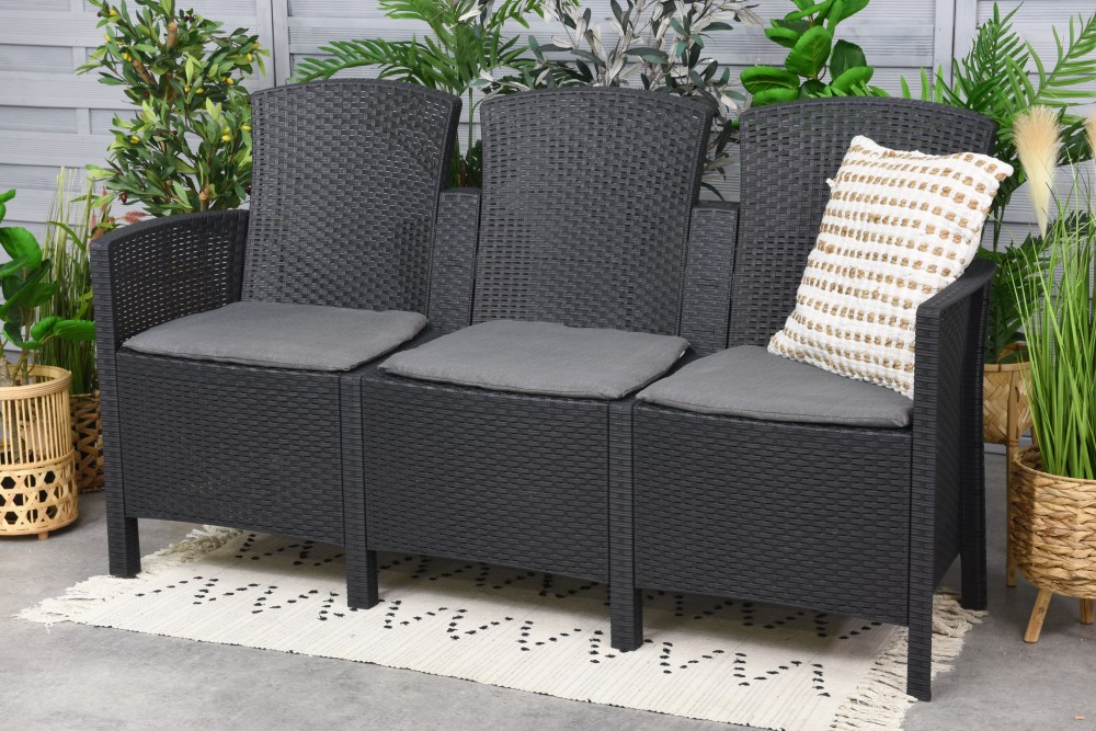 fot. Trzyosobowa sofa z technorattanu Toledo antracyt Garden Point