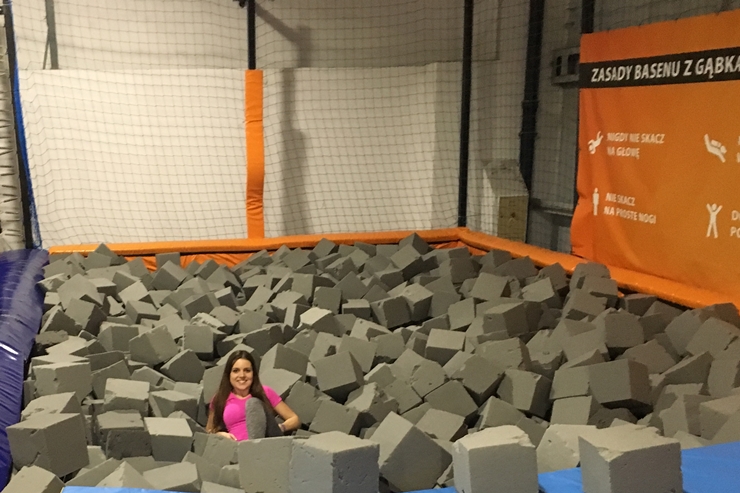 Kochani, dziś krótka relacja z parku trampolin, w którym ostatnio byliśmy. Wybierałam się do niego, odkąd został otwarty w moim mieście, no i ostatecznie po jakimś roku udało się :) Przede wszystkim, jeżeli jeszcze nie byliście w takim miejscu, a zamierzacie się wybrać, polecać sprawdzić na stronie parku najbardziej oblegane godziny w ciągu dnia, aby uniknąć tłumów. My pojechaliśmy w tygodniu o godzinie 20 i byliśmy praktycznie sami. Na początku dostajecie skarpetki antypoślizgowe, oglądacie filmik instruktażowy i możecie skakać. Zabawa jest świetna, a godzina w takim parku z całą pewnością może zastąpić nam ćwiczenia na siłowni. Oczywiście, jak to ja, nie uniknęłam obrażeń i podczas skoku do basenu z gąbkami uderzyłam się w głowę. Mimo to, jestem pewna, iż niedługo znów się tam wybierzemy!
