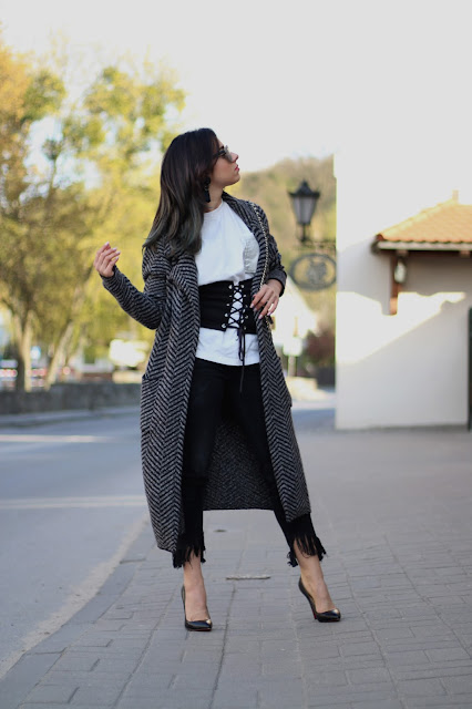 ( coat , tshirt , jeans , bag - ZARA , corset - MANGO