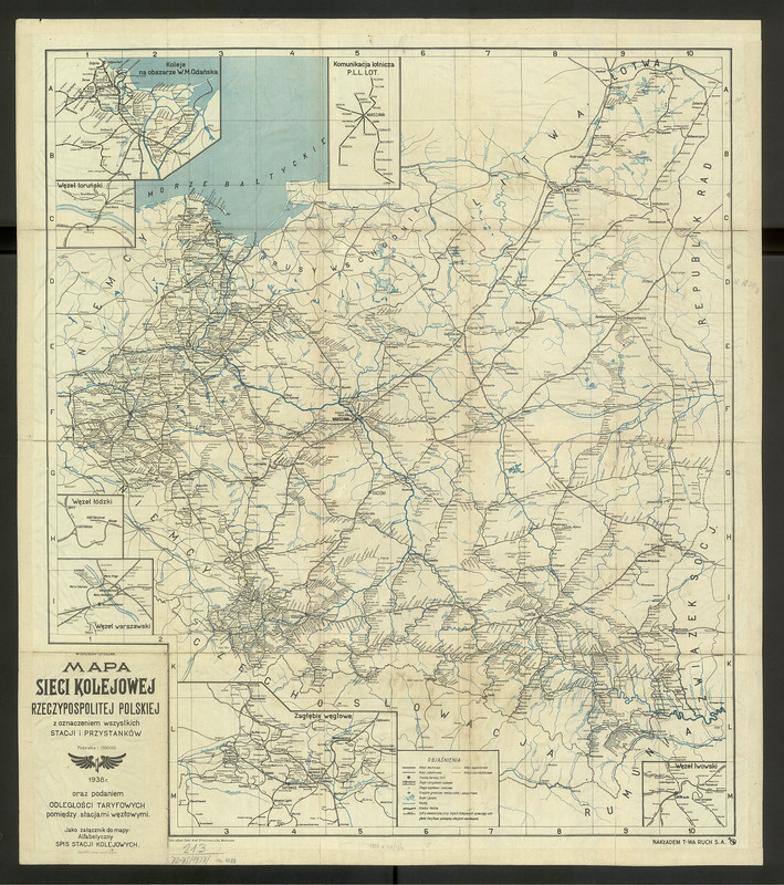 Na mapie kolejowej Polski z 1938 roku (38 MB) już jest bezpośrednie połączenie Warszawy z Krakowem przez Warkę, Radom, Kielce, Miechów (otwarte w 1934) oraz magistrala węglowa ze Śląska do Gdyni, zbudowana w latach 1926–1933 we współpracy z Francją. Tę magistralę otwarto, by uniknąć tranzytu przez niemiecki Śląsk oraz przez Wolne Miasto Gdańsk (WMG). Mapa zawiera też wstawki z dokładniejszymi planami węzłów lwowskiego, toruńskiego i warszawskiego oraz polskiej części zagłębia węglowego, a także obszaru WMG gdzie koleje normalnotorowe były pod zarządem PKP. Jest też spis wszystkich stacji i przystanków (zip; 15,6 MB).