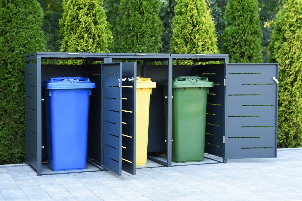 Z oczywistych powodów w części gospodarczej ogrodu umieszcza się kosz/kosze na śmieci lub buduje śmietnik. Miejsce powinno znajdować się blisko bramy lub furtki. Śmietnik powinien być oddalony przynajmniej 3m od granicy działki. Istnieje wyjątek – śmietnik można wybudować na granicy działki, jeżeli przylega do innego śmietnika. Dlatego można dogadać się z sąsiadem i zbudować dwa śmietniki na styku obu działek. W gospodarstwie używa się kilku śmietników, na różne odpady. Pojemność jednego, dla 3-4 osobowej rodziny powinna wynosić przynajmniej 240l. Kosze można osłonić obudowami.