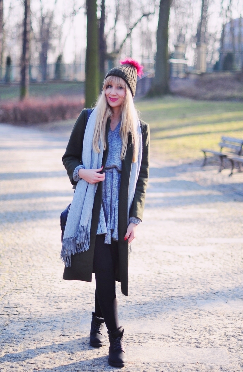 Zimowe zestawy na co dzień powinny być wygodne, dlatego dziś z klasycznym płaszczem zestawiłam botki typu traperki. Ciemna zieleń świetnie łączy się z szarościami, czernią i uwaga, nawet różem. Zdjęcia zostały zrobione jakiś czas temu dlatego nie zobaczycie na nich ani grama śniegu i mrozu :) Nie pozostaje nam nic innego jak cierpliwie wyczekiwać wiosny ♥