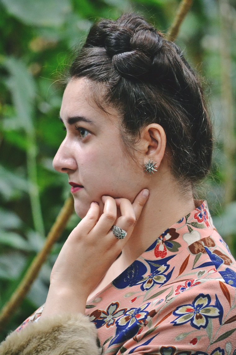 Zbliżenie na szczegóły. Kolczyki zamówiłam wiosną na Aliexpress za kilka dolarów. Jak się okazuje, bardzo dobrze wyglądają w zestawie z tym pierścionkiem i inną klasyczną, srebrną biżuterią.
