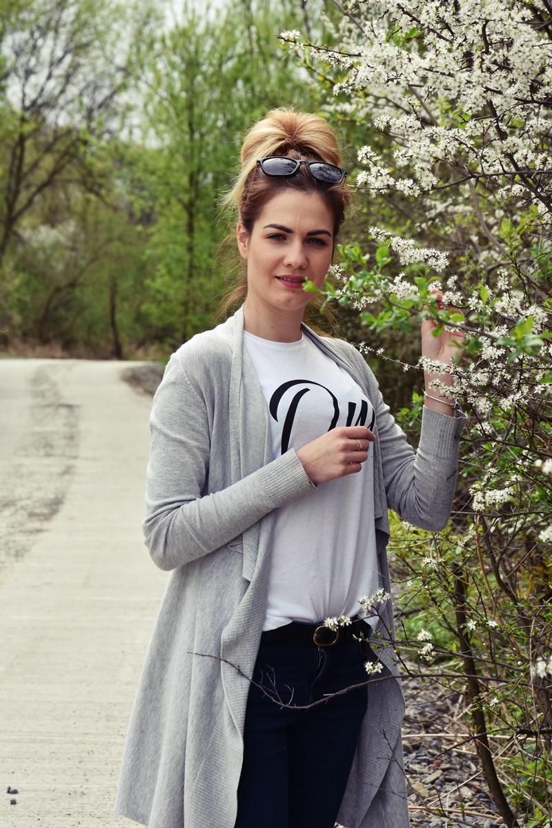Start- nowy tydzień! Dzisiaj mam dla Was kochani "zwyklaka" w postaci T-shirtu z MOHITO za jedyne 14,99 zł. Jak na obecną pogodę sprawdza się znakomicie. Wykonany jest z bawełny, a za tak niską cenę, aż żal było go nie kupić. Do tego dobrałam klasyczne rurki wraz z szarym kardiganem. Co powiecie na taki zestaw? Pozdrawiam