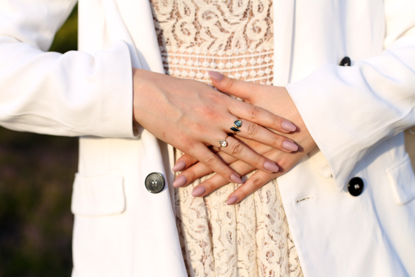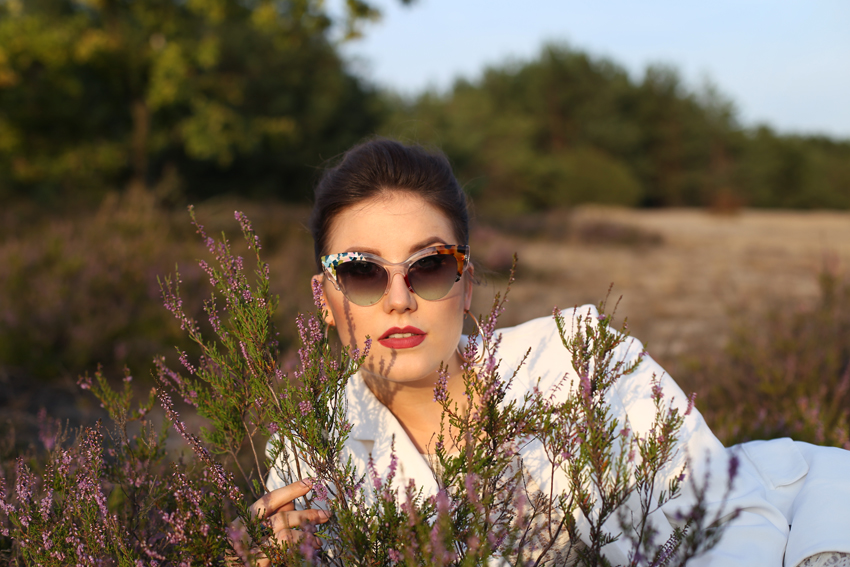 Sukienka: VINTAGE o Żakiet: ZARA o Kolczyki: YES o Pierścionki: DAWID PANDEL o Okulary: FENDI o Koturny: PRADA