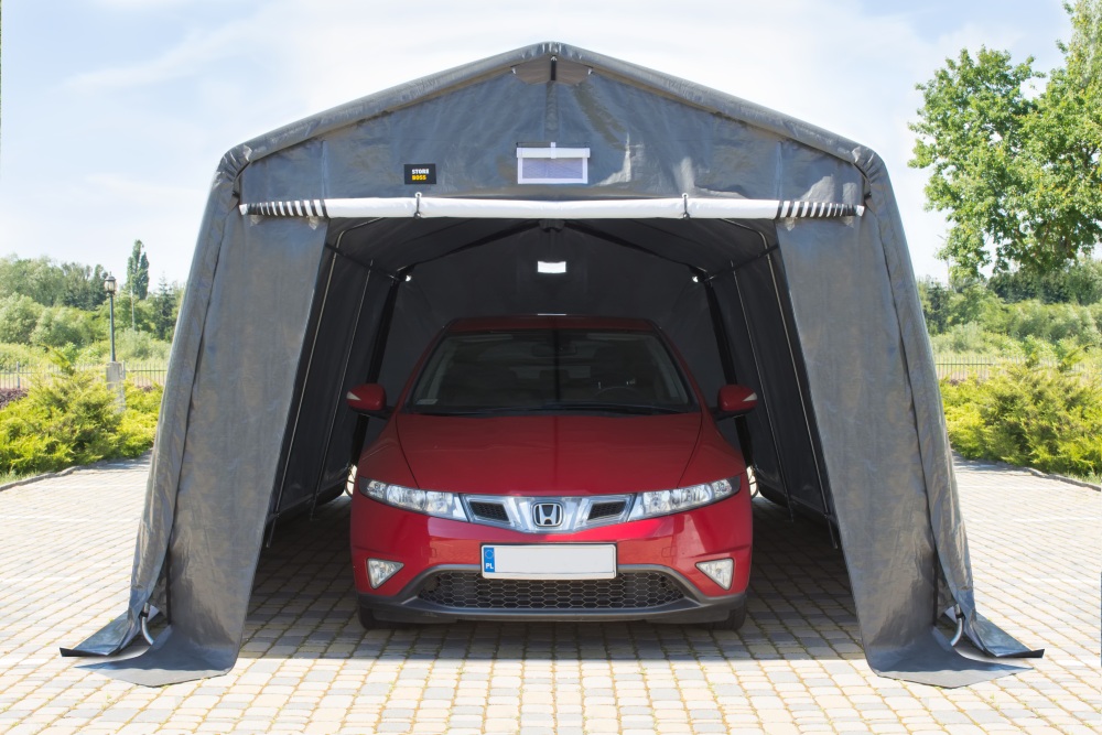 Namiot garażowy to coraz popularniejsza, budżetowa opcja. Prosty w montażu, szybki w realizacji, stosunkowo tani. Dodatkowo jest wodoodporny, często posiada szeroki wjazd i stabilną konstrukcję z galwanizowanej stali odpornej na korozję. Wodoodporna tkanina posiada ‘ściany boczne’ co również stanowi dodatkową ochronę. Namiot na samochód w tej chwili wybierany jest jako rozwiązanie tymczasowe przed realizacją zadania docelowego tj. wiaty czy garażu.