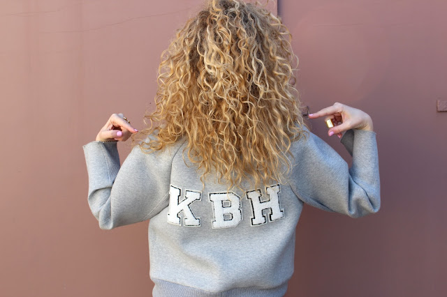 Łaty w stylu bomberki w postaci moich inicjałów nadają jej bardziej osobisty wyraz.