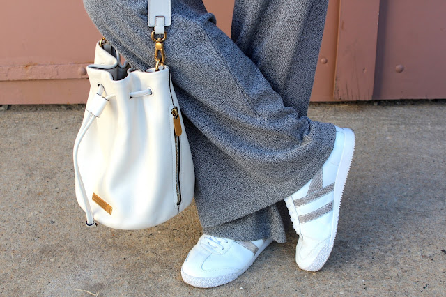 The whole outfit is matchy match in grays as well as off white,