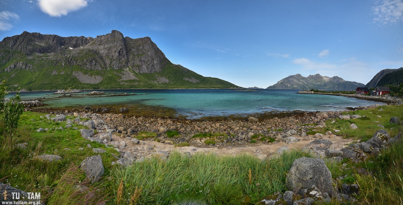 W Tromso spędziliśmy jeden pełny dzień, kiedy to wybraliśmy się na zaplanowane dwa krótkie, choć z założenia dość spektakularne trekkingi. Zważywszy na to, iż trochę byliśmy zmęczeni po całodniowej podróży w poprzednim dniu, ponieważ jechaliśmy z naszego Sosnowca do Gdańska na lotnisko, a potem jeszcze lot, postanowiliśmy nie zrywać się z łóżka o wczesnej godzinie. Bez pośpiechu więc zorganizowaliśmy sobie ekwipunek na cały dzień objazdówki, bo przecież trekking na Brosmortinden nie był naszym jedynym celem. No to po kolei, pierwszy punkt na trasie to piękna plaża Grøtfjord, na której plażowała rodzina reniferów. Coś niewiarygodnego. Dalej nasz Brosmetinden, na który prowadzi łagodny szlak z pięknym krajobrazowym finałem. Po trekkingu posiłek. I tu bardzo polecamy małą klimatyczną knajpkę Søstrene Kafè og Landhandleri, w której dwie nieco przyokrąglone (przepraszam), ale jakże sympatyczne, typowej skandynawskiej urody dziewczyny obsługują turystów. Oczywiście nie chodzi tu tylko o tą obsługę, ale o pyszną zupę rybną, pięknie podawaną. Bardzo polecamy.