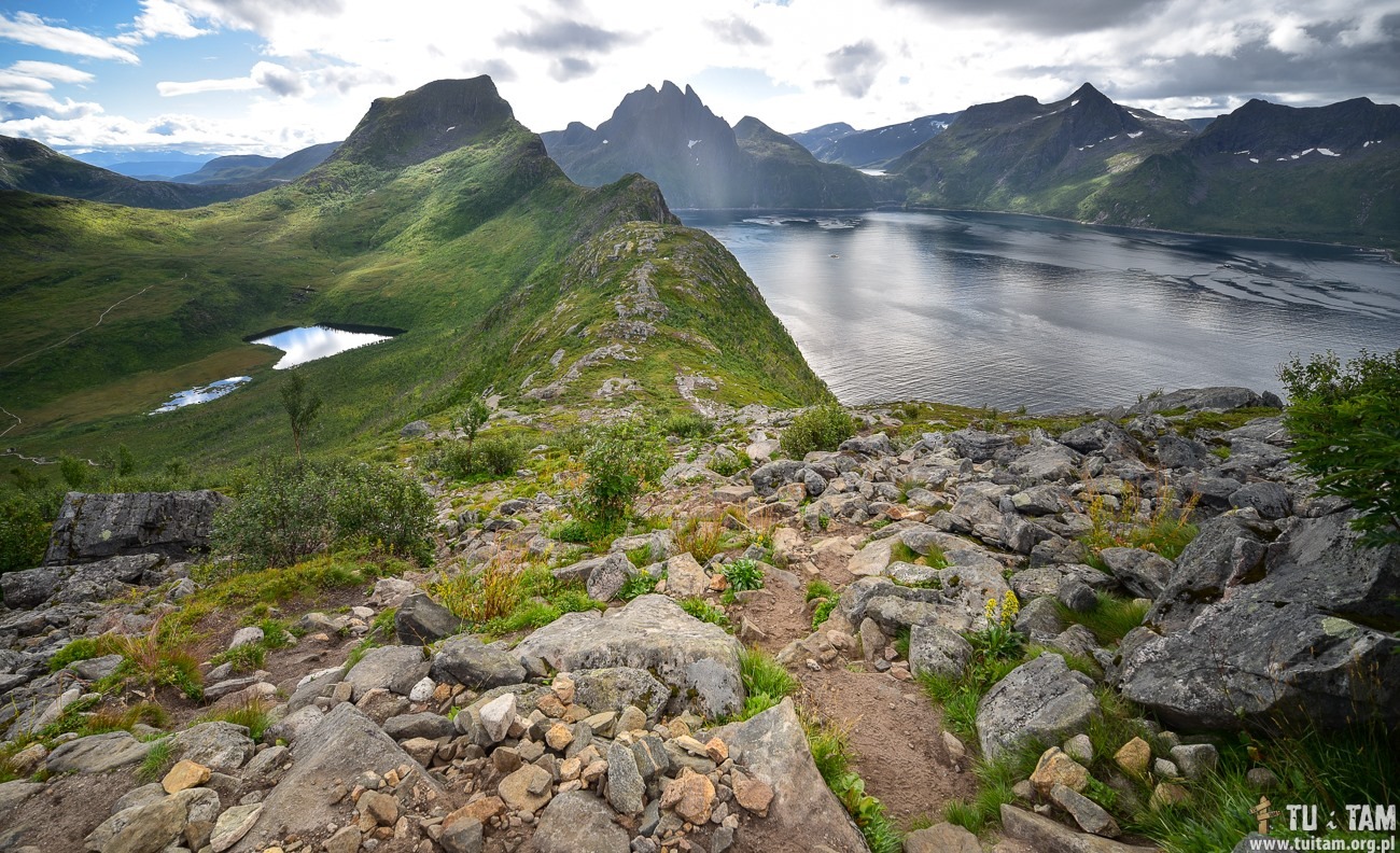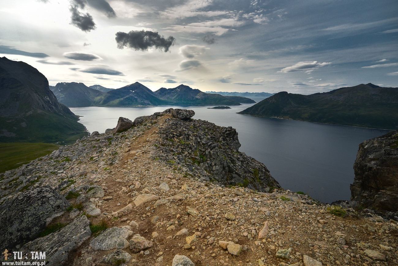 Należy tu zauważyć, iż nie każdy decyduje się na wyjście na szczyt SEGLI, ponieważ prowadząca tu ścieżka nie jest zbyt bezpieczna. Prowadzi ona baaardzo ostro pod górkę po osuwających się drobnych kamieniach co grozi upadkiem, szczególnie przy schodzeniu. Po opadach deszczu wędrówka wręcz niewskazana. Nie ma tu żadnych zabezpieczeń. Na dodatek występująca tu stromizna raczej uniemożliwi podejście osobom z lękiem wysokości. Jest pięknie, ale dla niektórych może się okazać mało komfortowo i zamiast przyjemności można odczuć dyskomfort. Nie mniej jednak nie trzeba wychodzić na szczyt SEGLI. I to jest ten plus. Z siodełka, gdzie startuje wspomniane podejście na Seglę możemy skierować się w przeciwną stronę i zachwycić się widokiem na wspomniany fiord.