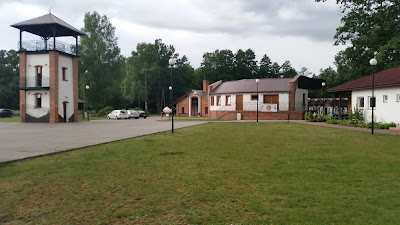 Tutaj czeka na nas pyszny obiad, schabowy z młodymi ziemniaczkami z koperkiem oraz młoda duszona kapusta. A to wszystko poprzedzone pomidorówką. Najedliśmy się do syta! Po krótkim odpoczynku ruszamy rowerami do pobliskiego (niecałe 200 m.) pałacu myśliwskiego. Obiekt wyjątkowy i niepowtarzalny, prawdopodobnie jeden z dwóch tego typu w Europie. Zewnętrzna elewacja pałacu, wykonana została z kory dębu korkowego sprowadzonego aż z Portugalii. Podobne rozwiązanie stosowano niezwykle rzadko, dlatego świadczy ono o wartości samego obiektu i jego walorach.
