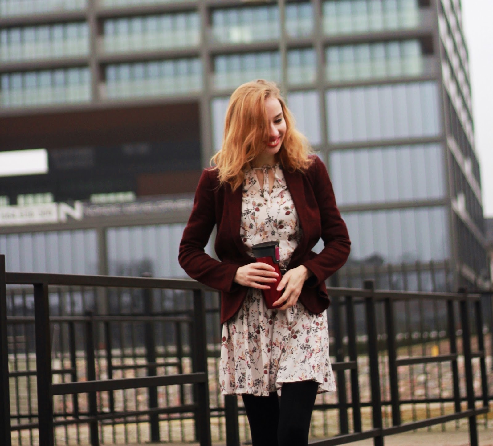 Zwiewną romantyczną sukienkę w kwiaty połączyłam z bordową marynarką. Całość jest bardzo wygodna i swobodnie czuję się w tym zestawie. Lubię sukienki w kwiaty i coś czuję, iż wiosną będę chodziła w sukienkach non stop. Zwłaszcza, iż podoba mi się moda na kabaretki, rajstopy w kropki i inne takie cienkie, zdobione rajstopy idealne na wiosnę!