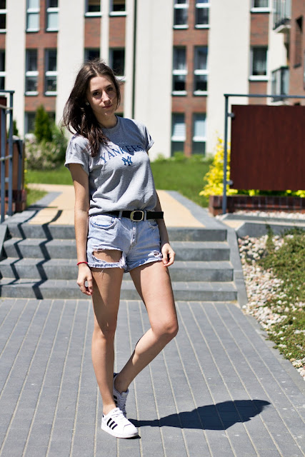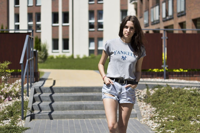 Szorty jak widzicie są porwane w każdym miejscu i bardzo intensywnie, jestem w nich kompletnie zakochana i póki co są moimi ulubieńcami! Koszulka natomiast jest totalnie w moim stylu i (przyznaję, bez bicia) chodzę w niej na okrągło! Kolczyki i bransoletka pochodzą ze sklepu Jubileo gdzie możecie dorwać sporo fajnych egzemplarzy biżuterii sztucznej.